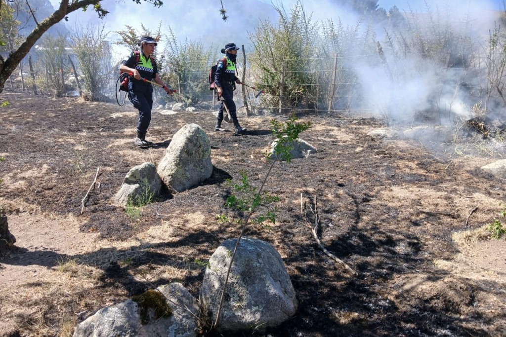Durante la tarde de este jueves, efectivos de la Comisaría de Tafí del Valle intervinieron en un incendio que se desató en el barrio La Quebradita, donde las llamas se propagaban peligrosamente hacia una zona con casas de veraneantes.