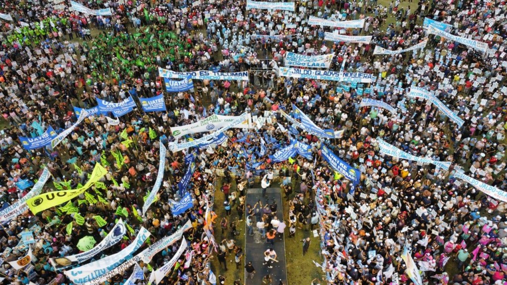 Más de 45 mil personas participaron del encuentro convocado por el Frente Tucumán Primero bajo el lema “80 años de historia, unidad y compromiso con el pueblo”. Osvaldo Jaldo encabezó el acto acompañado por referentes políticos, sociales y gremiales de toda la provincia.