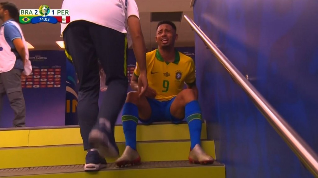 El delantero brasileño Gabriel Jesús lloró desconsolado camino al camarín del Estadio Maracaná, luego de ser expulsado de la final de Copa América Brasil 2019. El delantero, que tenía tarjeta amarilla, cometió una infracción sobre el defensor peruano Luis Abram y recibió la segunda amonestación, que le valió la tarjeta roja.