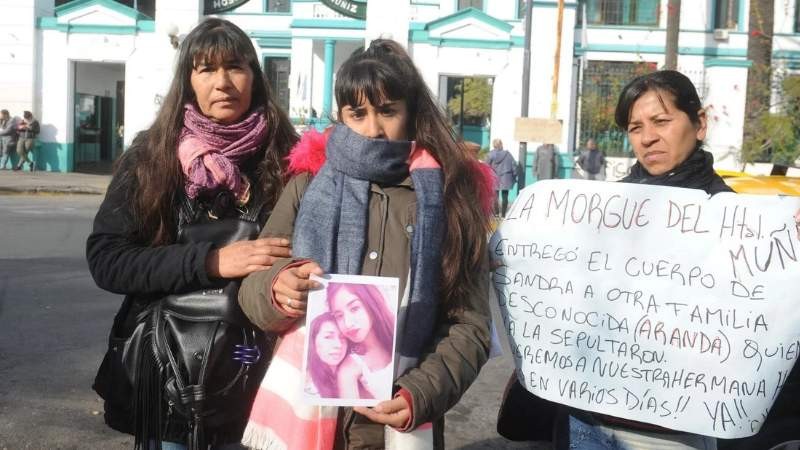 No fallecieron el mismo día. Una recién llegaba a los 40 y la otra había pasado los 50. No eran del mismo barrio. No se llamaban igual. Ni siquiera murieron por la misma causa. Pero Sandra Ávalos fue velada a cajón cerrado el domingo por familiares que la lloraban como si fuese Juana Aranda. Y fue enterrada en Monte Grande, a 30 kilómetros de su casa en Ciudad Evita. El cuerpo de Juana sigue en la morgue del Hospital Muñiz. Ahí se produjo el intercambio de cadáveres.