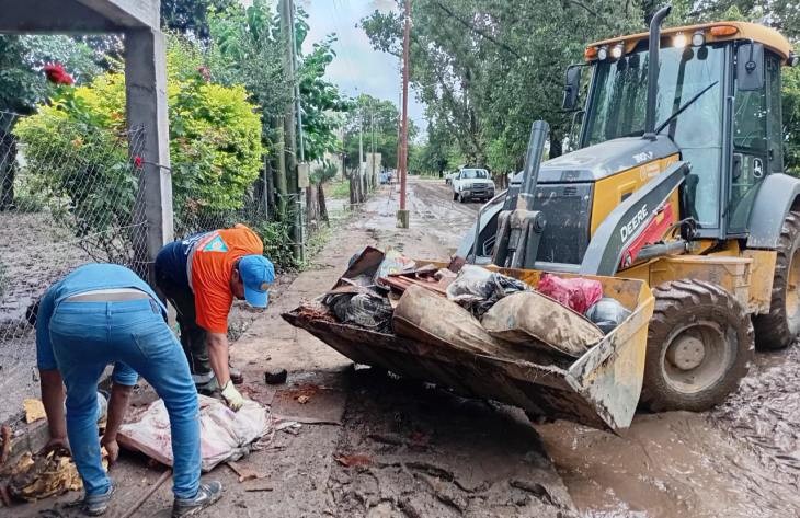 "Personal de la comuna, Defensa Civil y el SIPROSA trabajaron en los barrios San José y 9 de Julio realizando tareas de limpieza con maquinaria pesada y relevamiento sanitario. La parroquia aportaron donaciones", detalló Imbert.