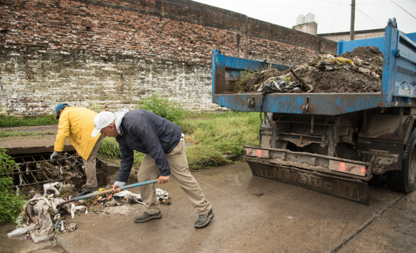 Cuadrillas de las Direcciones de Limpieza Urbana y de Espacios Verdes, que dependen de la Secretaría de Servicios Públicos, están abocadas al retiro de residuos, sedimentos y ramas de árboles de conductos pluviales en distintos puntos de la ciudad. También se limpian calzadas para mejorar la transitabilidad.