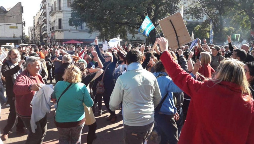 Integrantes de dos organizaciones sociales se movilizaron este martes hasta la plaza Irigoyen para reclamar la entrega de mercadería para comedores, distribuidos en la capital y en el interior de la provincia. "Van los referentes políticos y sacan mercadería", reclamó uno de los voceros.