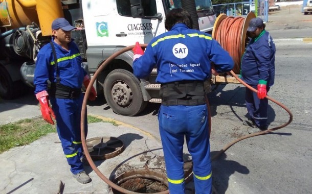 El personal técnico de la Sociedad Aguas del Tucumán (SAT) realiza trabajos de mantenimiento y mejoras en los servicios de agua y cloacas