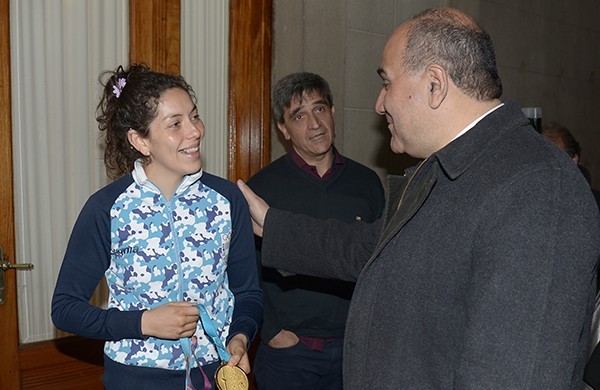 Ella obtuvo la medalla dorada en la disciplina de pelota paleta en los Juegos Panamericanos de Lima (Perú), por esto la deportista tucumana, Cynthia “Popis” Pinto, que fue recibida en Casa de Gobierno por el gobernador, Juan Manzur, que estuvo acompañado por el diputado nacional, Pablo Yedlin