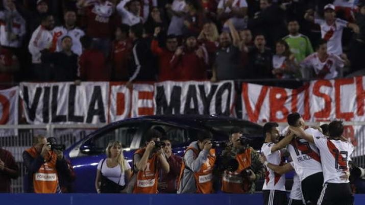 El "Millonario" abrió el marcador a los 11, por medio de una excelente jugada colectiva elaborada en la derecha por Fernández, Santos Borré y Montiel, que siguió con el centro atrás del lateral para la llegada de Pratto, quien fusiló a Arias y metió el 1- 0.