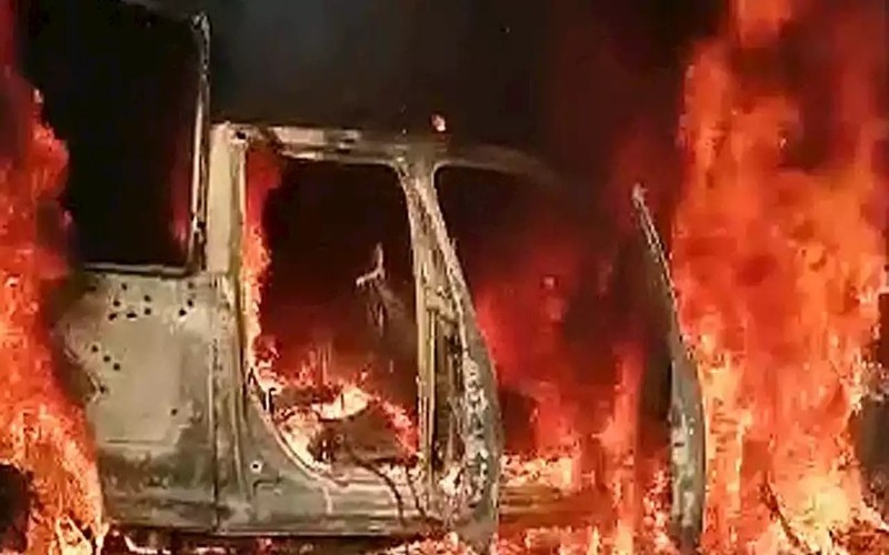 Los vehículos quedaron calcinados al ser atacados a balazos y con granadas de fragmentación. Los agresores también dejaron mensajes con amenazas para las instituciones de seguridad.