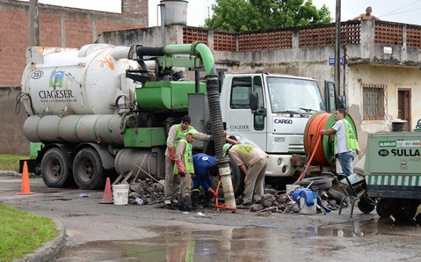 Malvinas esq. Las Higueritas. Desobstrucción en red cloacal.