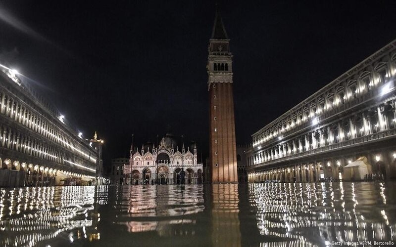 Uno de los motivos postales más famosos de la ciudad Patrimonio Mundial de la UNESCO, La Plaza de San Marcos, está completamente inundada. Mientras que los turistas y lugareños caminaban ayer de día con botas de agua, por la noche solo la Policía se movía con botes. Justo antes de la medianoche, el agua se elevó a 187 cm sobre el nivel del mar, según los informes del ayuntamiento de la ciudad, el más alto desde la devastadora inundación en 1966. Ya hay dos fallecidos a causa de este desastre natural.
