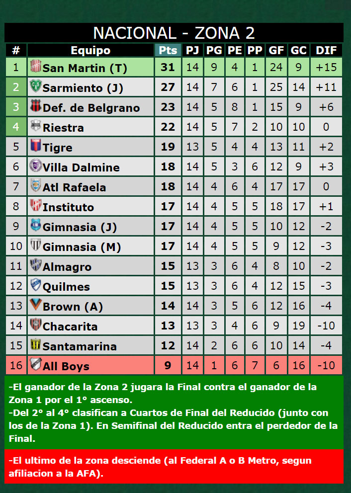 Disputada parcialmente la fecha 14, así quedaron las posiciones en ambas zonas:
