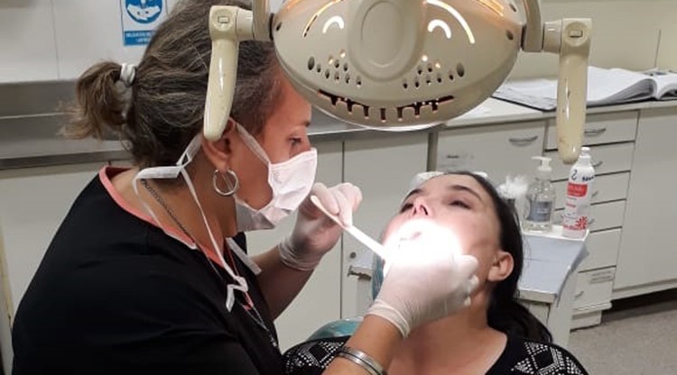 Dentro del consultorio de odontología se destinó un sillón para realizar examen clínico bucodental, esto a cargo de las odontólogas María Lilia Rotundo y Gabriela Haddad.