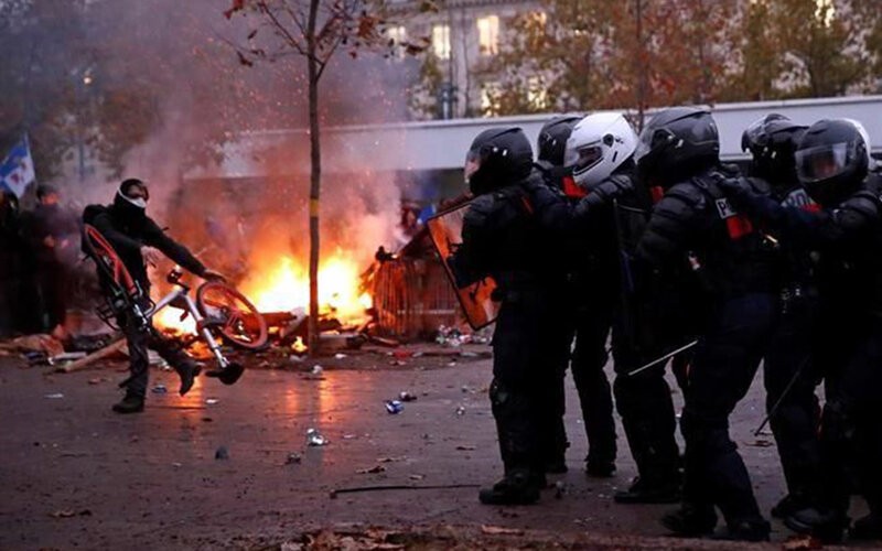 Los gremios lanzaron la huelga nacional por tiempo indefinido contra la reforma central del presidente Emmanuel Macron. Al menos 87 manifestantes fueron arrestados en la capital francesa por la noche, mientras las manifestaciones menguaban.