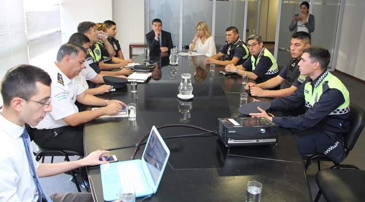 José Ardiles, subsecretario de Seguridad, y de Coordinación Institucional, Mariela Martín Domenichelli, mantuvieron una reunión de trabajo con efectivos de la Guardia Urbana, con el fin de intensificar el trabajo que se viene desarrollando en distintos barrios de la capital. Se llevara el programa relaciones con la comunidad al barrio Oeste II, ATE y Villa 9 de Julio