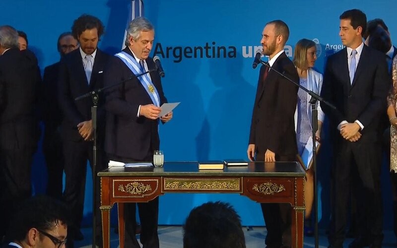 Tras la firma de Felipe Solá (ministro de Relaciones Exteriores, Comercio Internacional y Culto), sí lo hizo Guzmán. Le siguió Matías Kulfas (ministro de Desarrollo Productivo). Previo a su jura, el Presidente le expresó un comentario que causó otra carcajada general: “Me tiene a maltraer esto (por la banda presidencial), es que no acostumbro a usar bandas”.