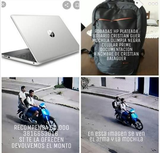 El acompañante se llevó cargando la bici en la moto, además se llevaron la mochila del joven que no sufrió daños. Los vecinos afirman que los mismos sujetos ya habian robado una mochila a pocas cuadras del lugar.