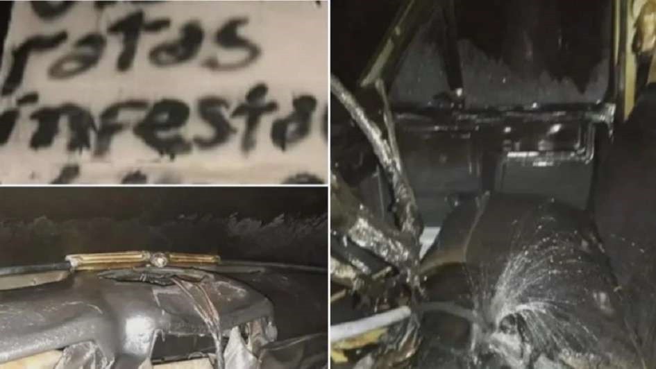 La camioneta Ford F-100 fue incendiada durante la madrugada de hoy en el barrio CGT Sur de la capital riojana y sobre el vehículo fue dejado un mensaje escrito en un cartón que decía "ratas infectadas váyanse”, añadieron las fuentes.