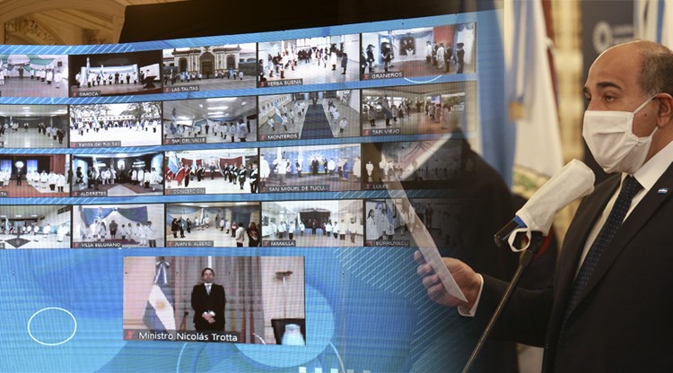 En su discurso, el ministro de Educación de la Nación, Nicolás Trotta, desde el Palacio Sarmiento en Buenos Aires lamentó no poder participar de la fiesta en Tucumán “porque nos golpea una pandemia que implica tomar decisiones para cuidar la salud de todos y todas como lo que hicieron el Presidente y el Gobernador Juan Manzur desde el primer día”.