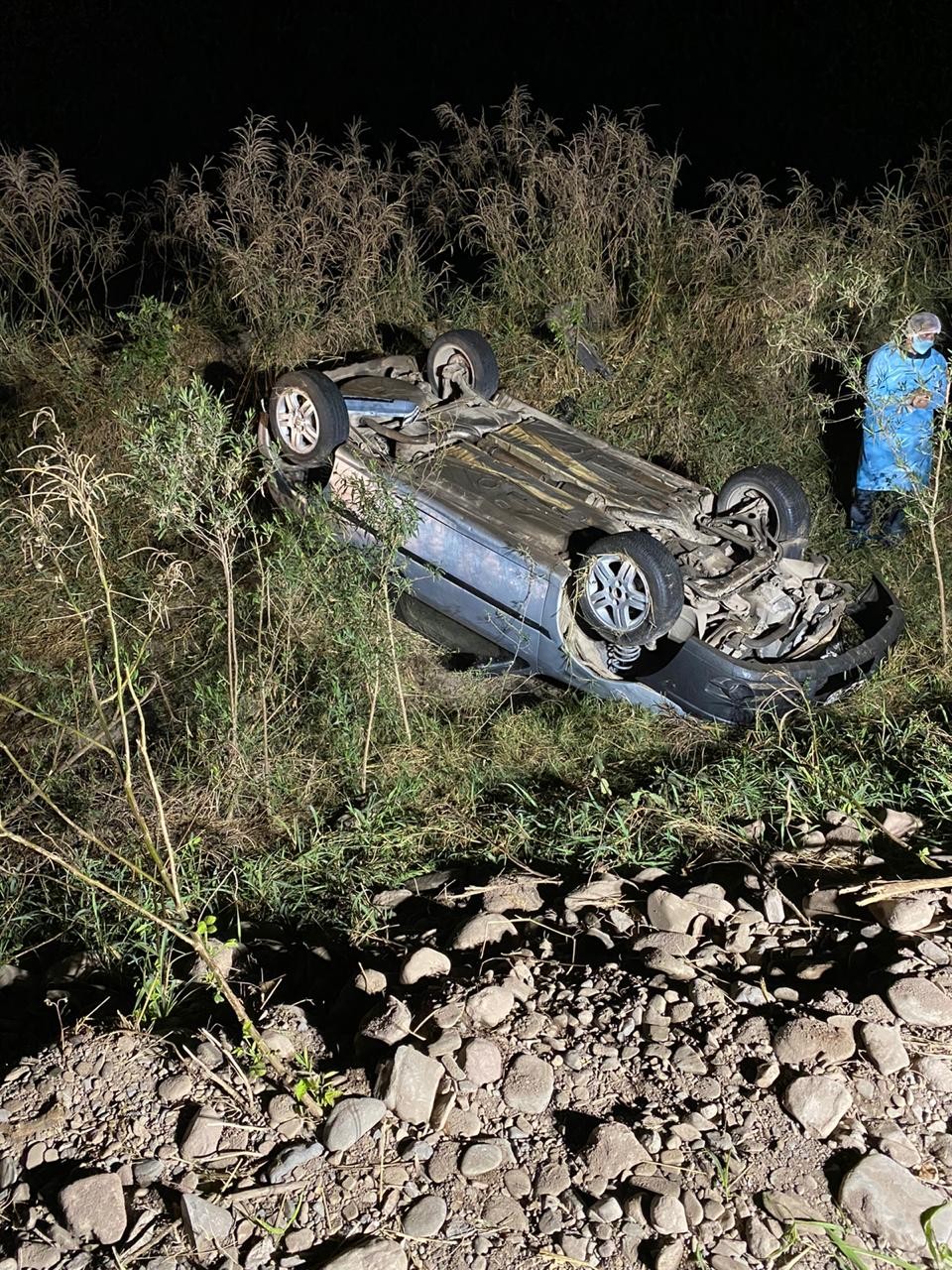 Dos de los presuntos asaltantes fueron atrapados cuando el auto en el que se movilizaban volcó mientras se daban a la fuga y quedó dado vuelta en una zanja