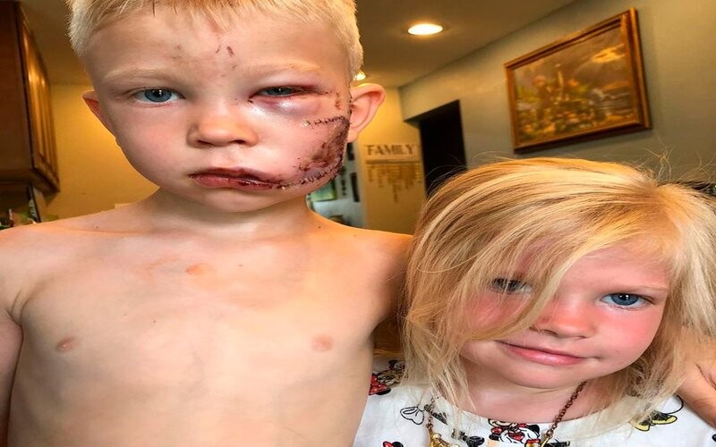 Bridger, de seis años, enfrentó a la mascota de sus vecinos y sufrió varias mordidas en la cara, pero pudo rescatar a la pequeña
